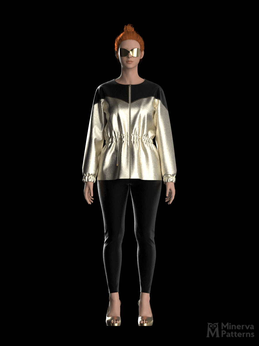 Introducing a digital pattern for the color-block zip jacket with drawstring waist – Urban Edge with Sporty Detail.
